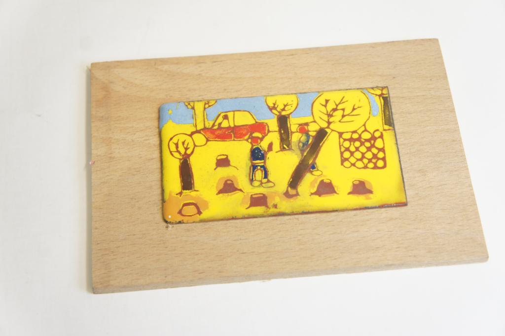 Tűzzománc kb.: 5x9,5cm, hordozó fakeret kb.: 10x15cm