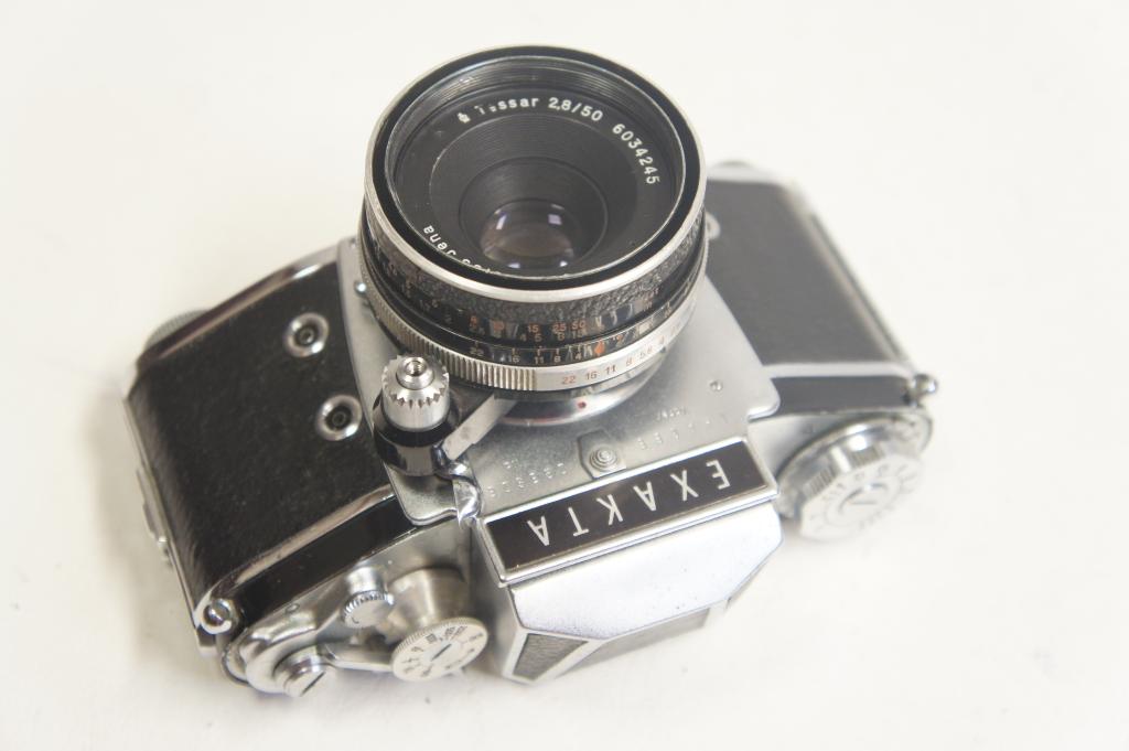 Exakta fényképezőgép sz.: 973499, Tessar 2,8/50mm objektív sz.: 6034245