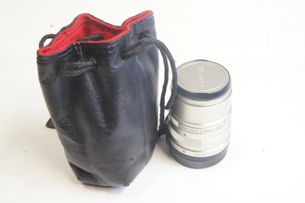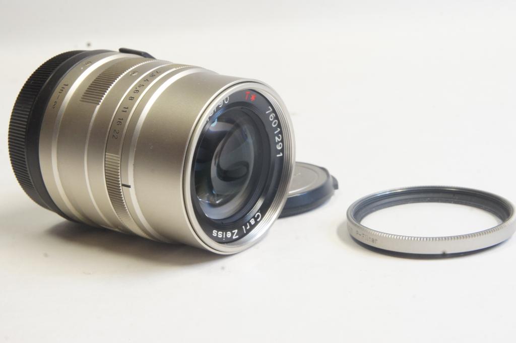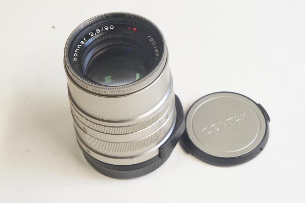 Contax Carl Zeiss Sonnar T* 2,8/90mm objektív 7601291 Bőr tokkal. Contax P szűrővel M48