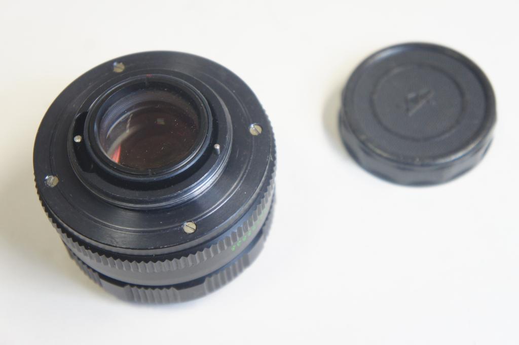Helios-44M-6 2/58mm objektív sz.: 92158838 Objektív sapkákkal. Egy apró pötty látható a front lancsén. M42