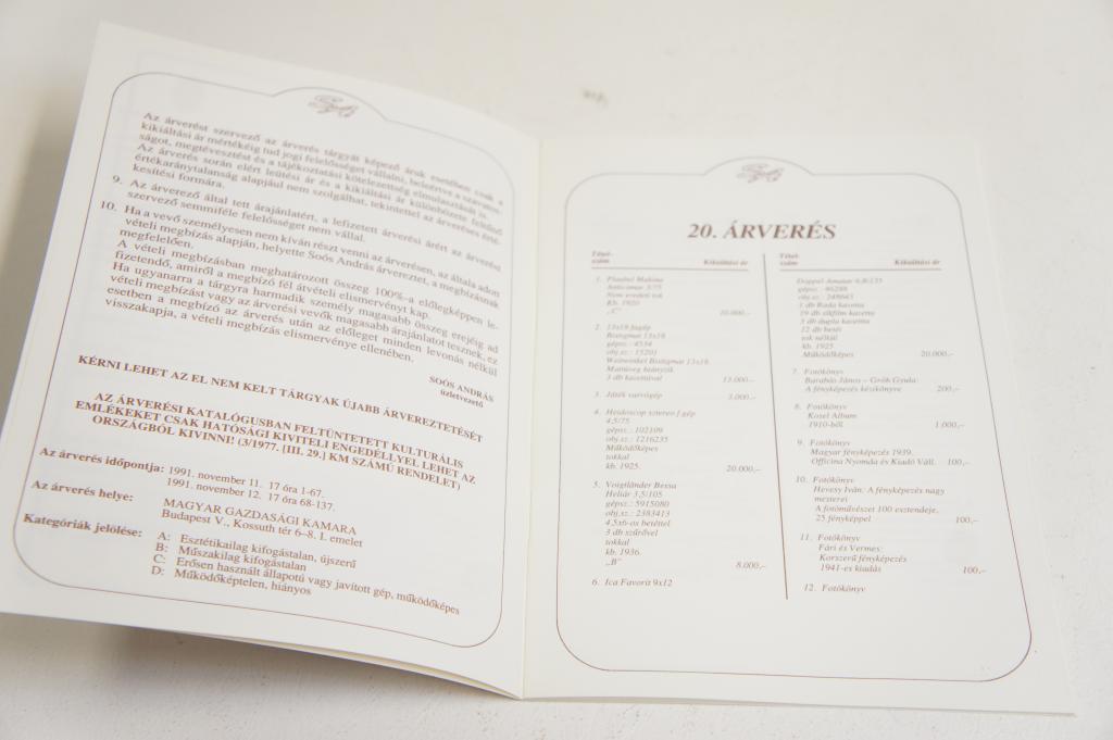 Árverési Katalógos - Soós András 20. Árverés 1991.11.11-12. Jó állapotban.