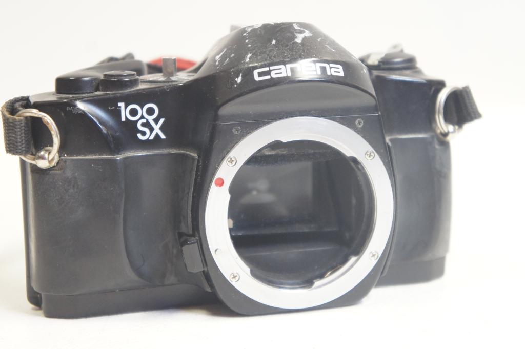 Carena 100SX fényképezőgép váz sz.: 40426198 Vászon vállszíjjal. Hiányos (időállító), zár működik.