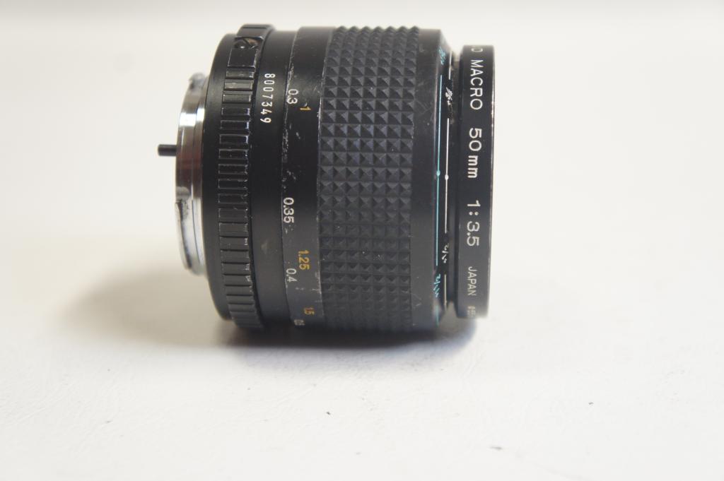 Minolta MD Macro 3,5/50mm objektív sz.:8007349 Hátsó objektív sapkával.
