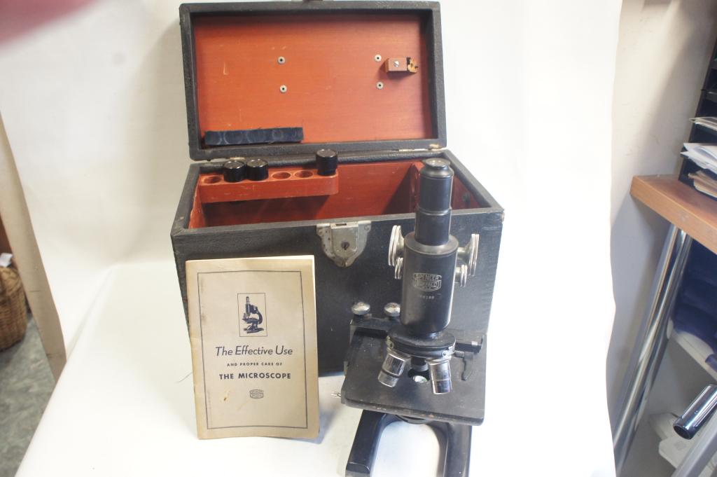 Spencer Buffalo mikroszkóp sz.: 208189 Dobozzal, leírással, 3 objektívvel. Erősen használt állapotban.