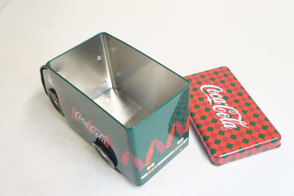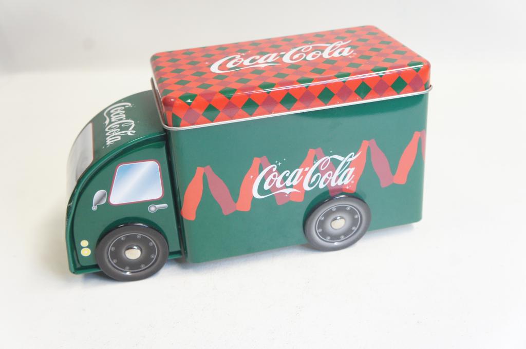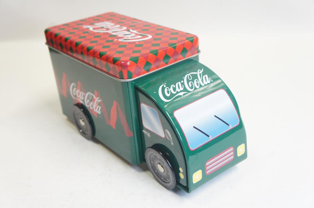 Coca-Cola feliratú keksz tartó fém teherautó Megkímélt állapotban. Kb.: 21cm hosszú, 11cm magas, 9cm széles.
