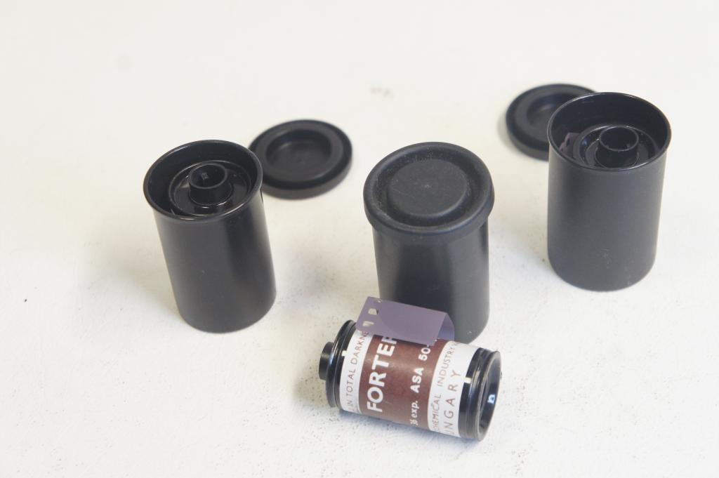 Előhívott roll filmek 10db Forte dobozban Pár dobozon címke, "traktoros, Gellérthegy stb."