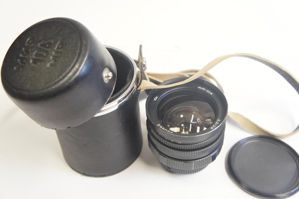 MIR-10A 3,5/28mm objektív sz.: 880662 Tokkal, első objektív sapkával, 4db szűrővel. M42