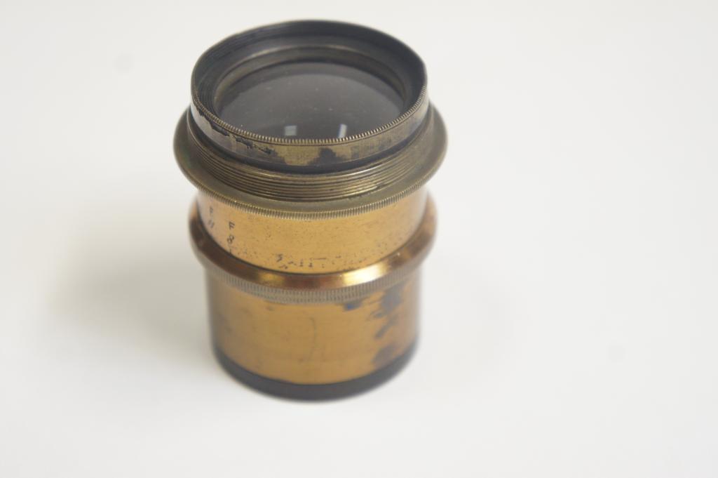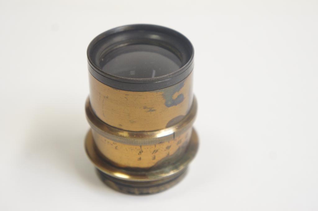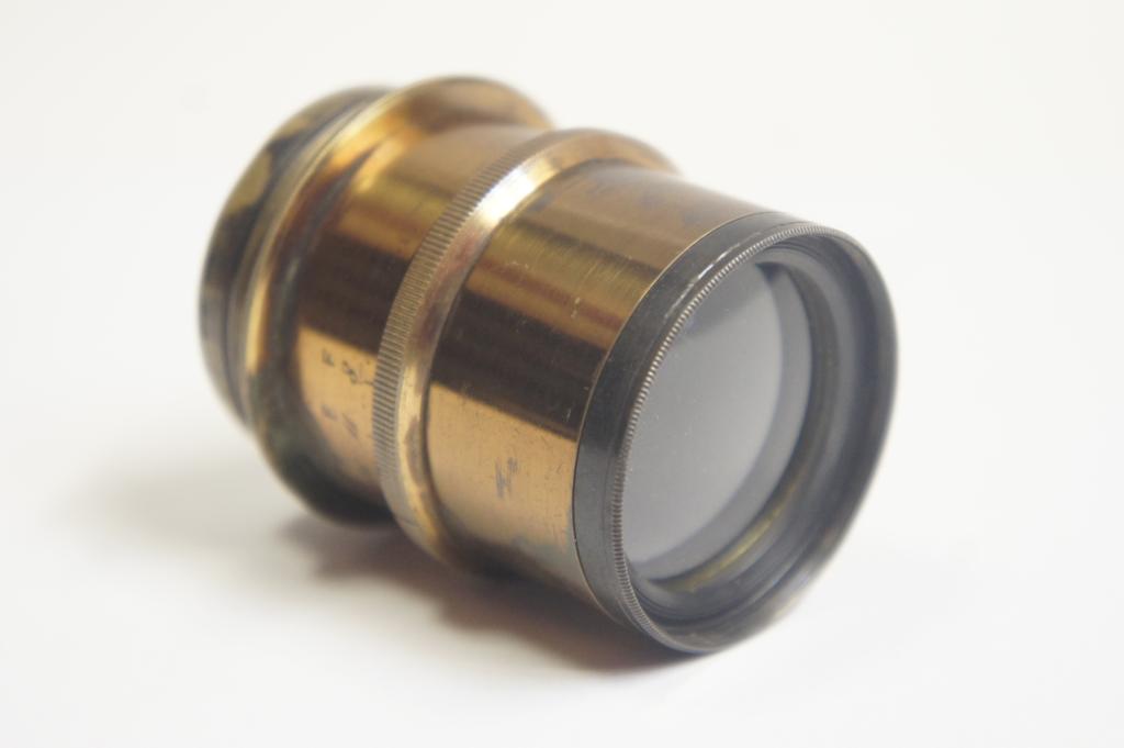 Rodenstock (München) Doppel Anastigmat Lumiar 6/180mm objektív sz.: 1193 Réz foglalatú, blende működik Tisztításra szorul. M47