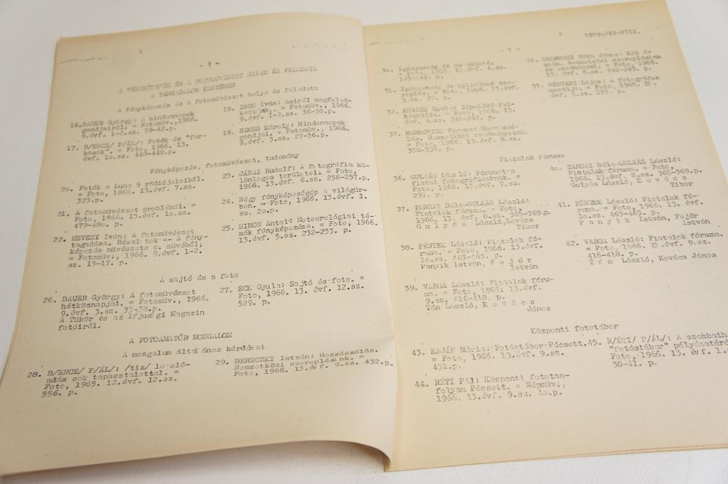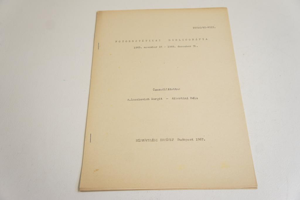 Fotóesztétikai bibliográfia 1965.11.15.-1966.12.31. ; Népművelési Intézet 1967. Összeállította: A.Laczkovich Margit-Albertini Béla. Újságcikkek, híranyagok forráshelyéről és... |