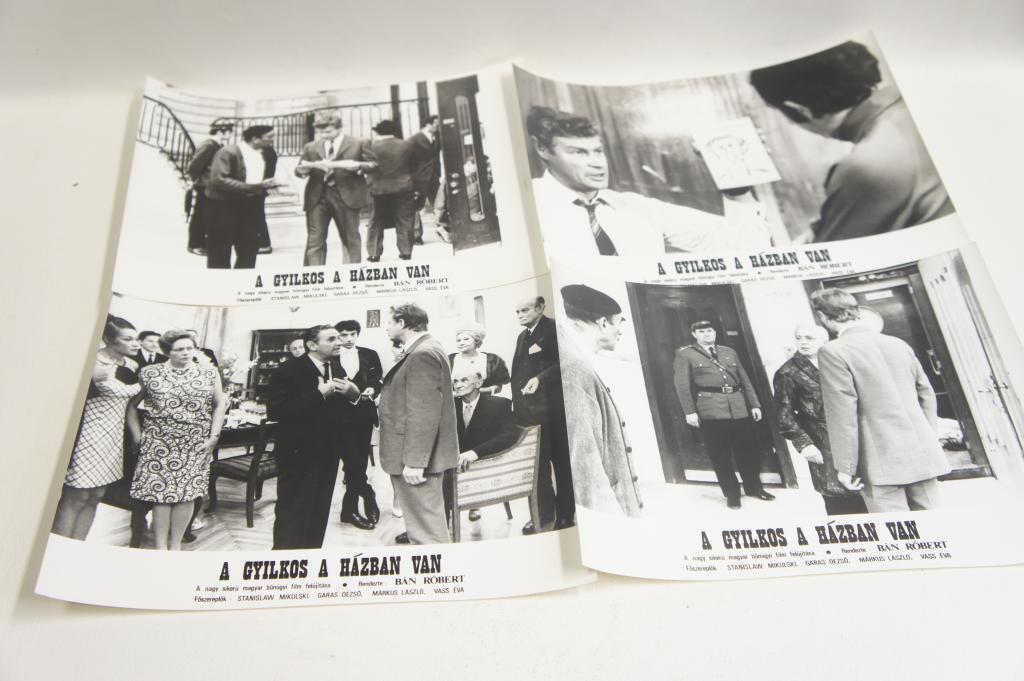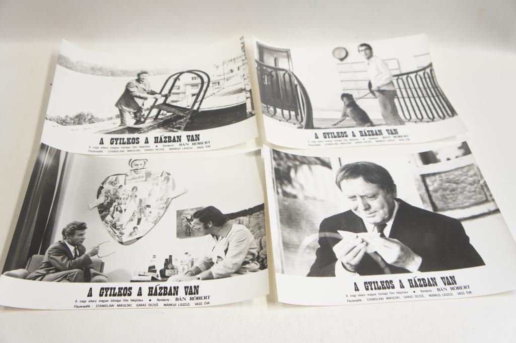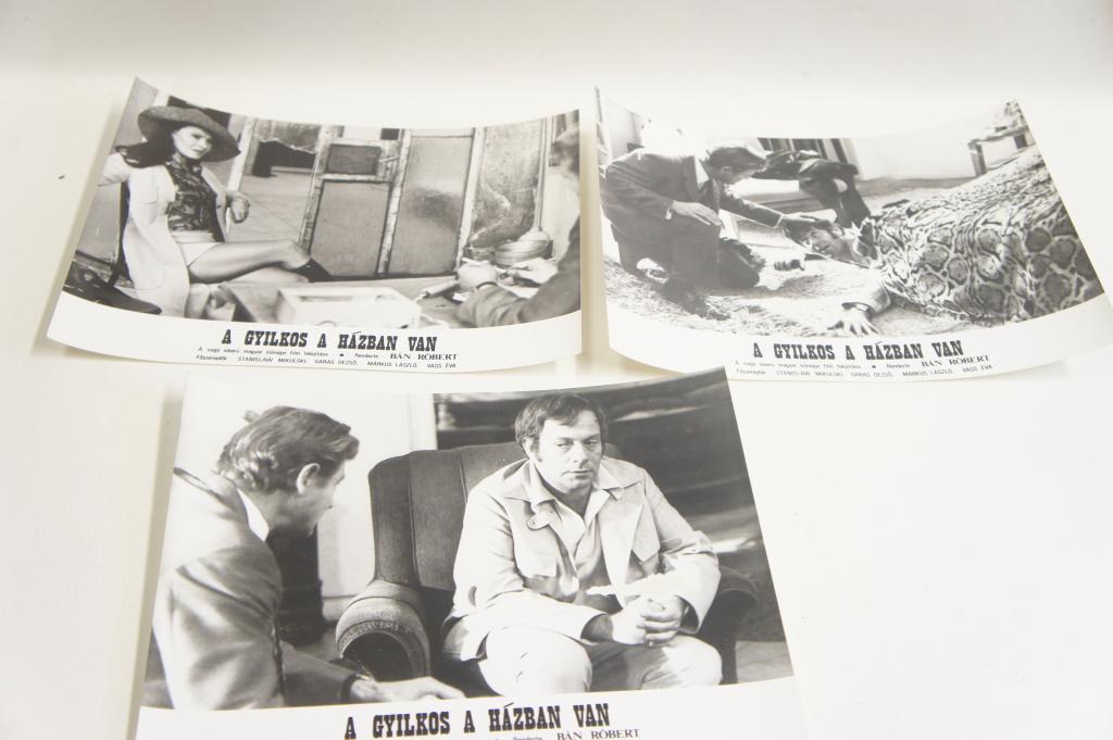 Fényképek a " A gyilkos a házban van" című filmből. 15db Vitrinfotók. Jó állapotban, kb.: 18x24cm