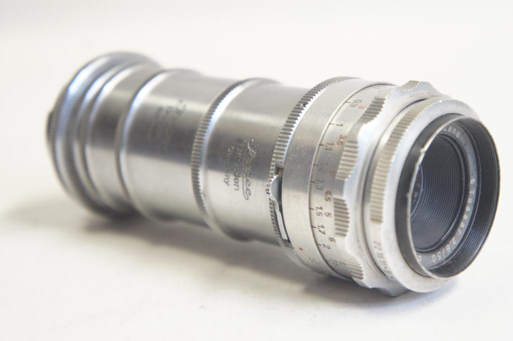 Carl Zeiss Jena Tessar 2,8/50mm objektív sz.: 6447896 - közgyűrűvel Objektív erősen szennyezett. Exa