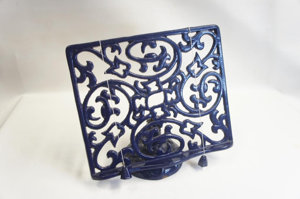 Díszes, festett kotta-, könyv tartó vasból Jó állapotban. Tartó rész kb.: 27x22cm